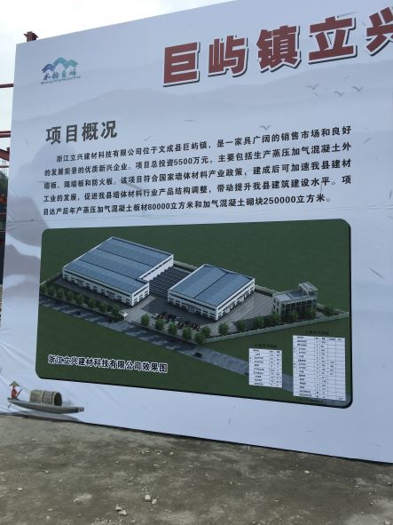 | 簡介 | 浙江立興建材科技有限公司成立于2018年12月,法人代表為何洪乖,注冊地址位于浙江省溫州市文成縣巨嶼鎮(zhèn)鎮(zhèn)中東路81號二樓,企業(yè)類型為有限責(zé)任公司,統(tǒng)一社會信用代碼:91330328MA2AQAEP2Y,經(jīng)營范圍:蒸壓加氣混凝土板材、蒸壓加氣混凝土砌塊的研發(fā)、制造和銷售。(依法須經(jīng)批準的項目,經(jīng)相關(guān)部門批準后方可開展經(jīng)營活動) 隨著我國建筑業(yè)的發(fā)展,對建筑物外墻材料要求也不斷提高,而蒸壓加氣混凝土制品是一種高效保溫隔熱圍護結(jié)構(gòu)材料,市場前景廣闊。根據(jù)市場需求和企業(yè)發(fā)展,浙江立興建材科技有限公司在文成縣巨嶼鎮(zhèn)工業(yè)園區(qū)投資建廠,項目建成后年產(chǎn)80000m3蒸壓加氣混凝土板材和250000m3加氣混凝土砌塊。該項目于2020年04月02日在文成縣發(fā)展和改革局完成備案,項目代碼:2020-330328-30-03-115671,由于巨嶼鎮(zhèn)工業(yè)園區(qū)無天然氣管網(wǎng),項目需配套建設(shè)LNG氣化站,為燃氣鍋爐供氣。
