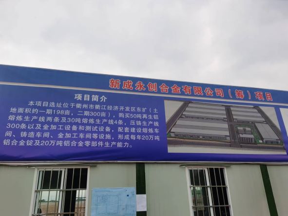 新成永創(chuàng)合金有限公司年產(chǎn)20萬噸鋁合金錠及20萬噸鋁合金零部件項(xiàng)目于2021年8月23日在衢江區(qū)經(jīng)濟(jì)和信息化局(中小企業(yè)局)進(jìn)行備案,項(xiàng)目代碼:2020-330803-33-03-176364。