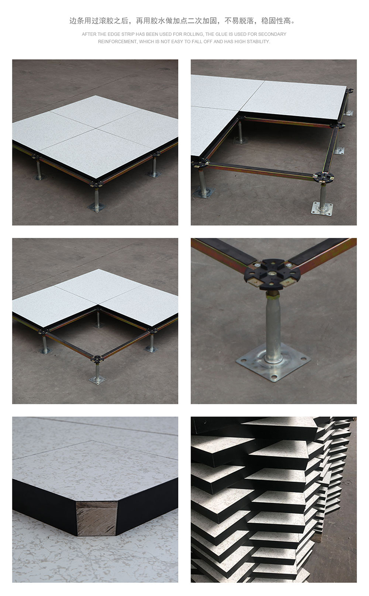 硫酸鈣防靜電地板采用硫酸鈣為基材,地板上面用防火板HPL/PVC/陶瓷地板等裝飾面層,下面用鍍鋅板或壓花鋁合金粘合,四周用PVC導(dǎo)靜電封邊,地板不易受潮,不易變形,耐燃燒時間更長,使用壽命長,安裝好的地板下面形成通路,方便下面地板走線,線路檢修。地板無需除油磷化噴塑,平整度好、邊不反翹,環(huán)保、強度大,密封性及穩(wěn)定性好。