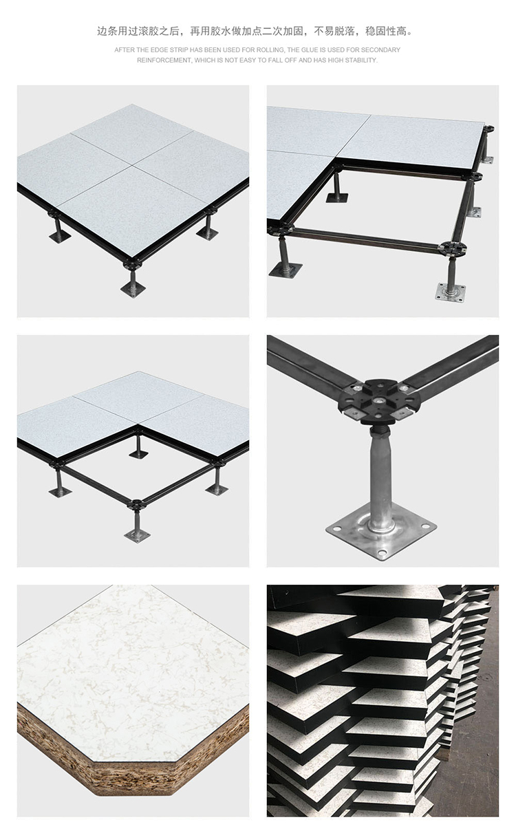 歐式復(fù)合地板,板芯采用、未經(jīng)加工的中高密度刨花板基,上面粘貼HPL(防火板)、PVC、陶瓷、等不同裝飾面層,下面粘貼鍍鋅鋼板/鋁板/鋁箔,四周導(dǎo)靜電黑膠條封邊,阻止機(jī)械損壞及潮濕變形。通過阻燃劑的添加,使其達(dá)到B1級防火,且具有較輕的自重,達(dá)到更高的承載能力和環(huán)保水平,標(biāo)配出口型加重配件。