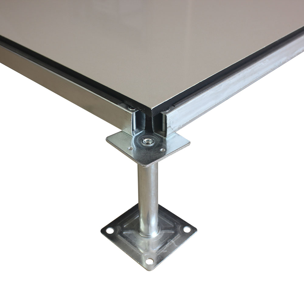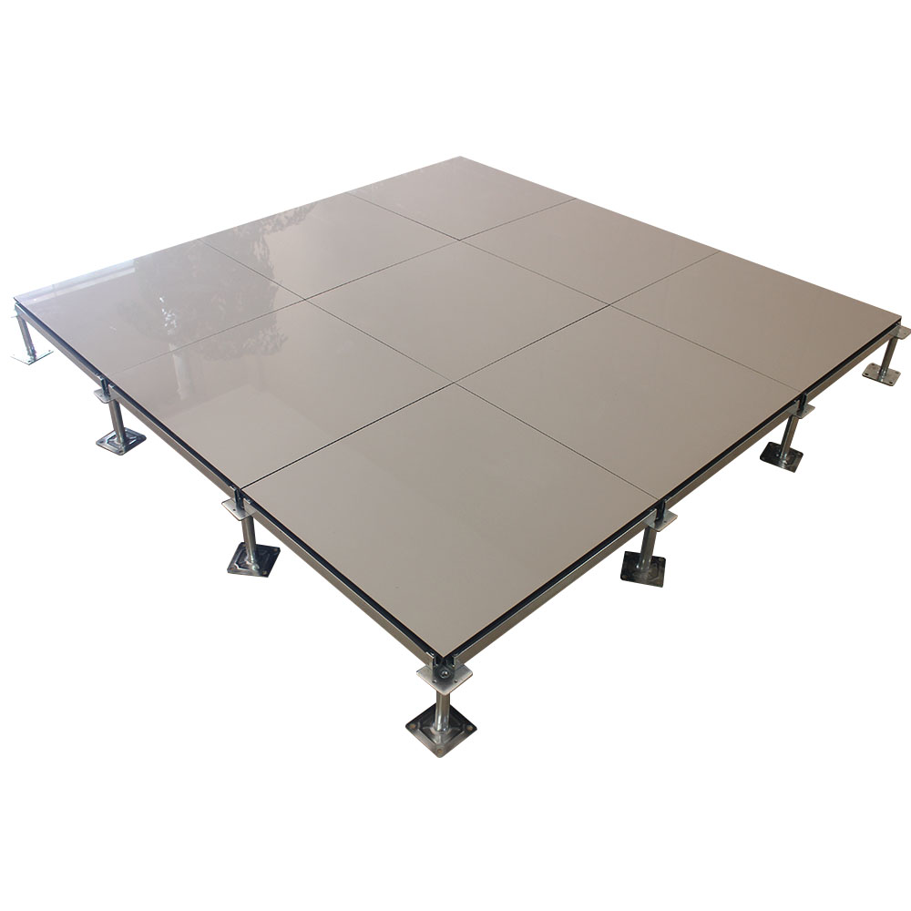 全鋼陶瓷防靜電地板采用上海寶鋼合金冷軋鋼板,經(jīng)拉伸后點焊成形。在瓷質(zhì)面層的生產(chǎn)過程中,均勻注入防靜電添加劑,由于面層的耐磨性,防靜電性能可以保持20年以上。而且系統(tǒng)電阻穩(wěn)定、經(jīng)信息產(chǎn)業(yè)部防靜電協(xié)會檢測,各項性能均達到要求。全鋼陶瓷防靜電地板系統(tǒng)有地板、橫梁、支座組成。橫梁和自身高度可調(diào)的支座用螺釘連結(jié)成穩(wěn)固的下部支承系統(tǒng),地板鑲嵌入橫梁圍成的方格內(nèi)。